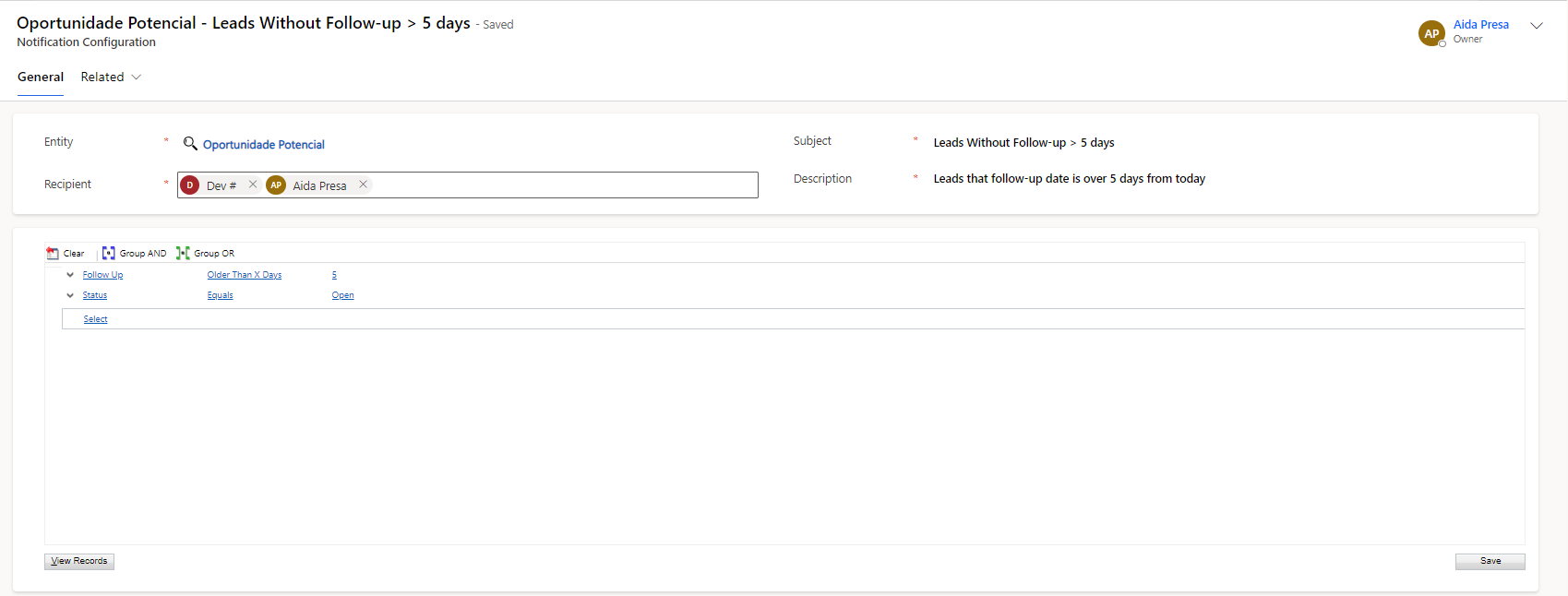 • Leads, como “Lead sem atividade há mais de 5 dias”